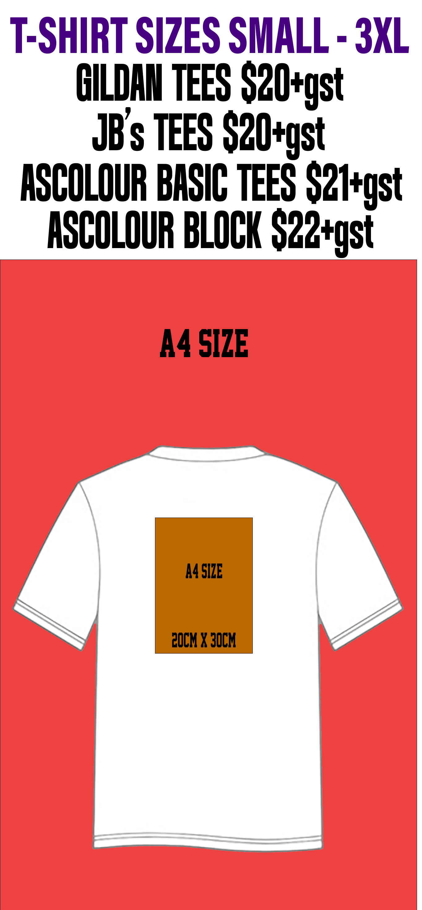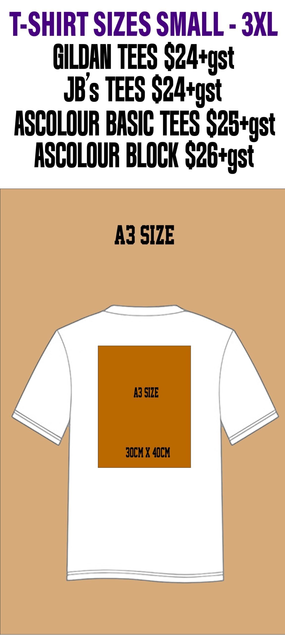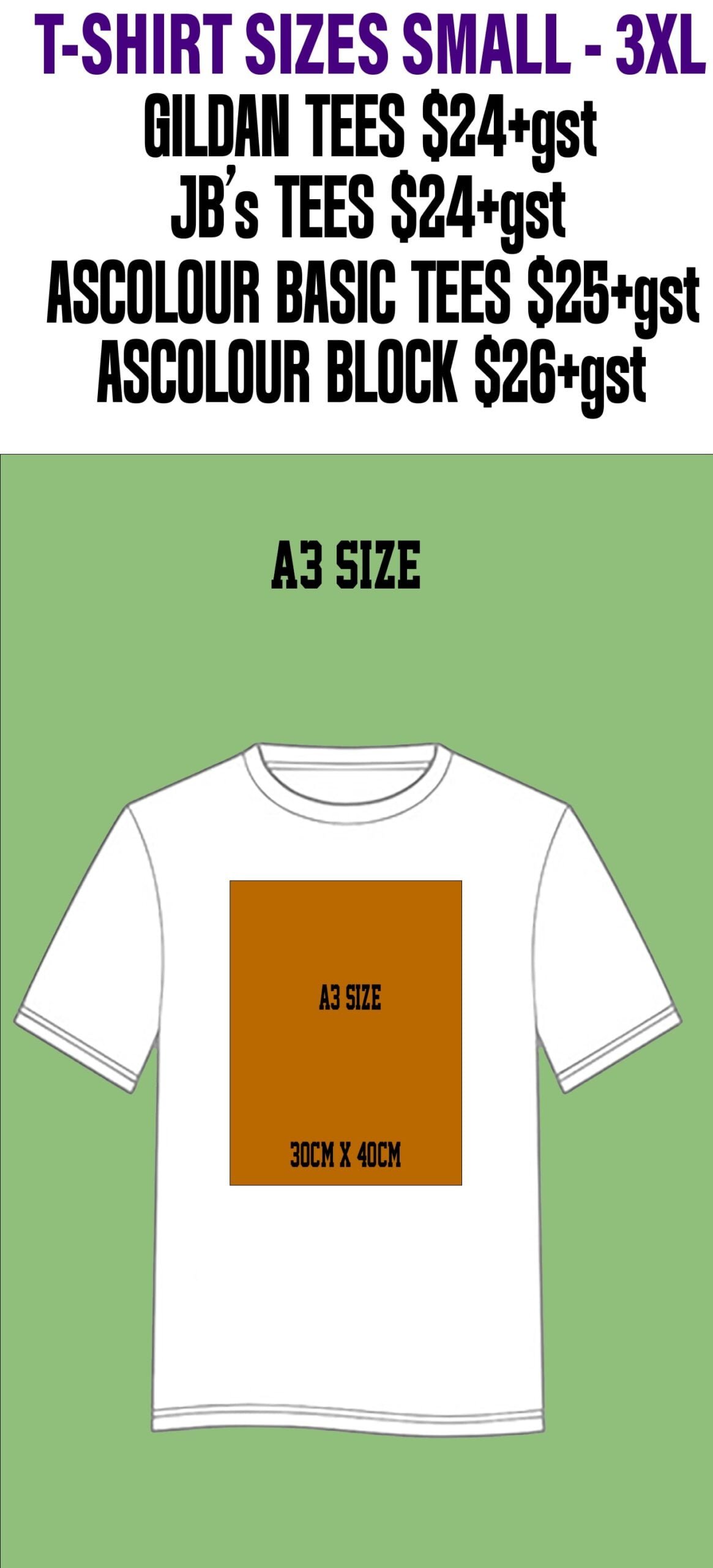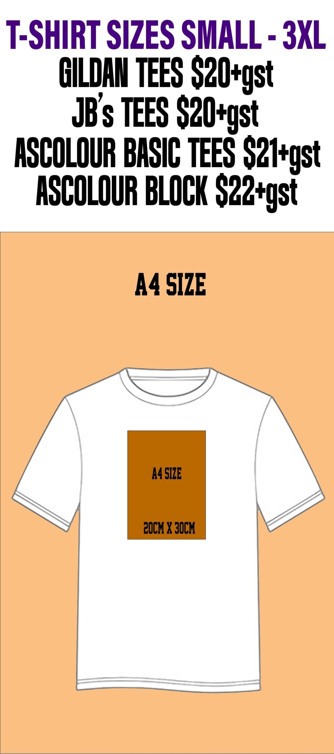 - Add $2+gst to the S-3XL quote for Gildan, JBs Wear, Cloke, AS Colour brands